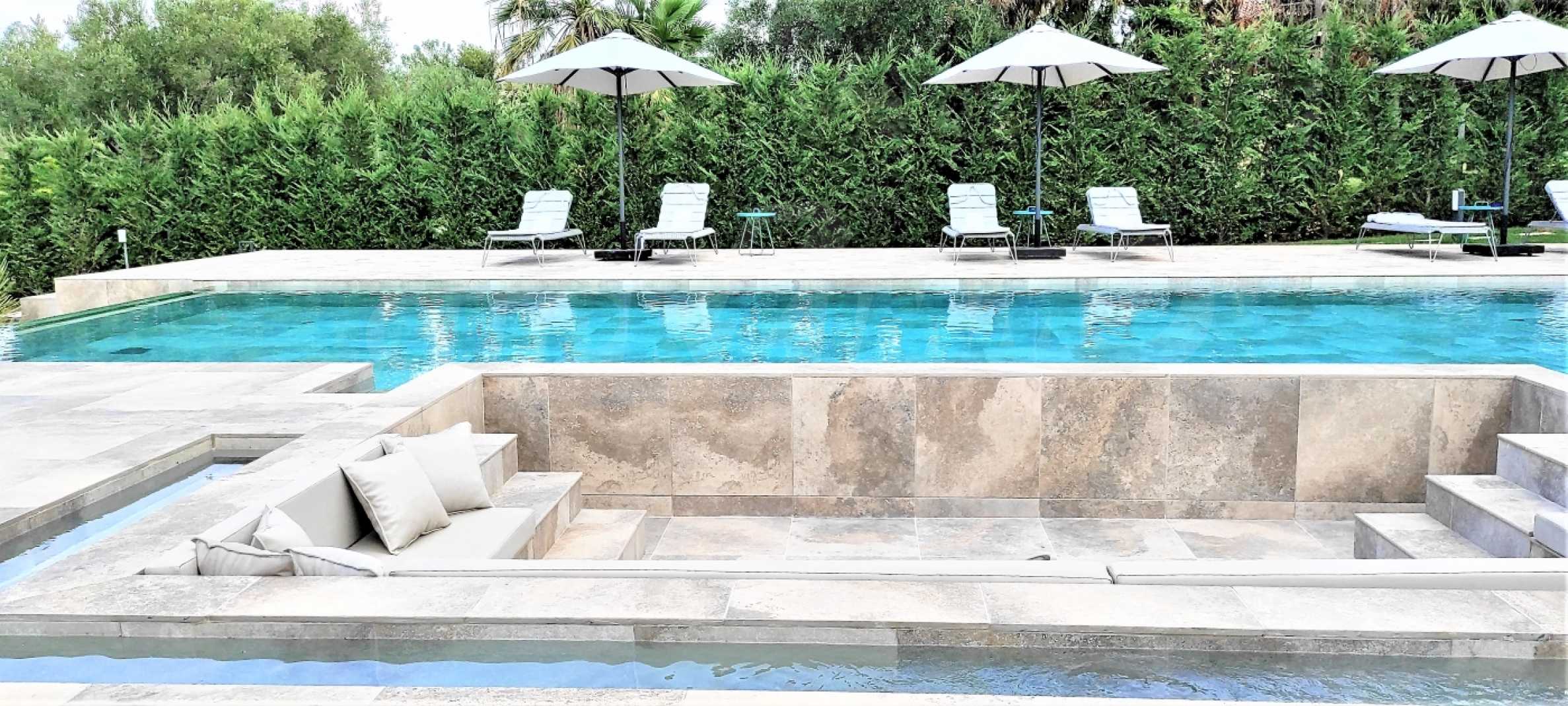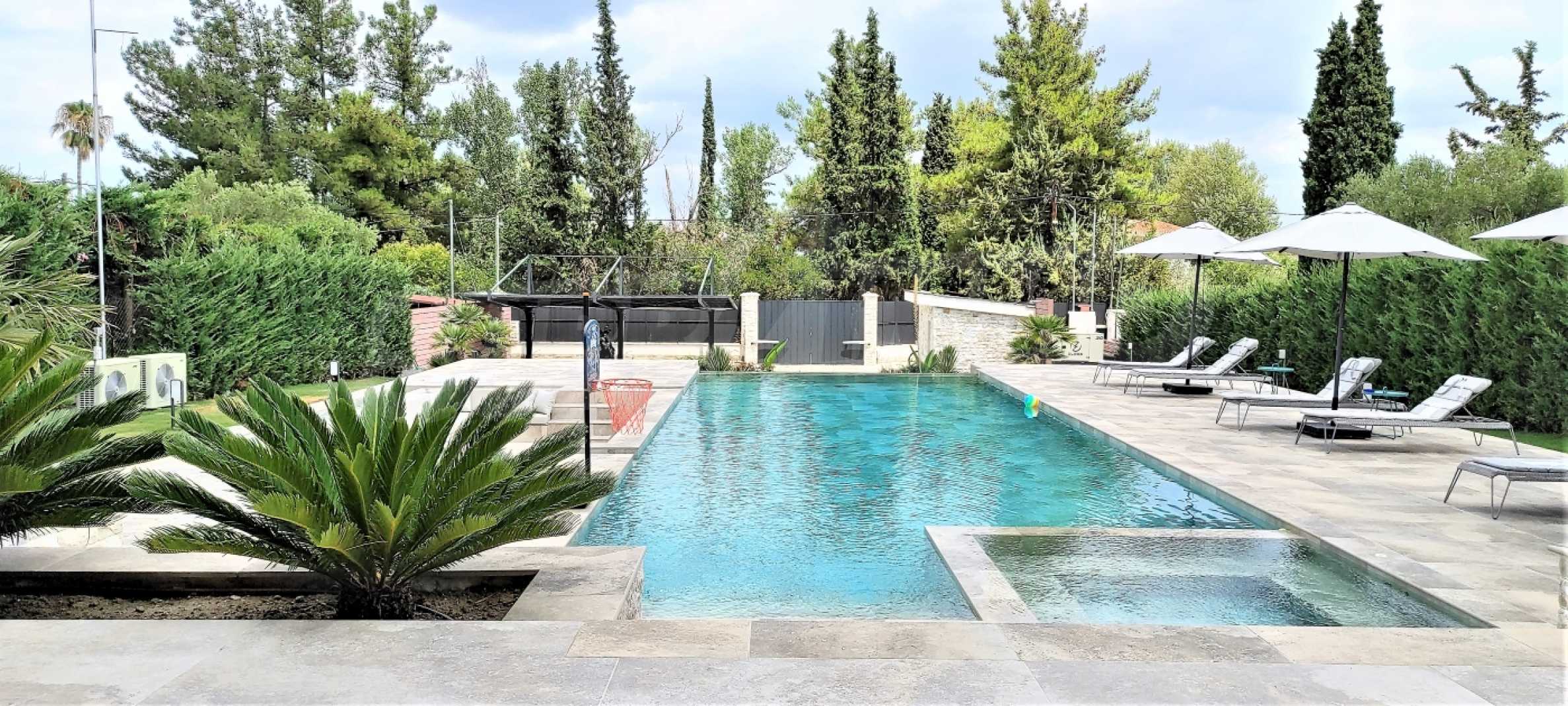Przedstawiamy Państwu luksusową willę o nowoczesnym wyrafinowanym designie, nowej konstrukcji, w jednym z najpopularniejszych miejsc na Półwyspie Chalcydyckim, Pefkohori. W przedniej części dziedzińca znajduje się basen typu infinity i jacuzzi, zewnętrzne prysznice, a także zabudowana strefa relaksu, otoczona kojącym szumem wody. Na przestronnym podwórku znajduje się siłownia zewnętrzna i szklarnia. Nieruchomość wyróżnia się współczesną i nowoczesną architekturą i designem, dobrą lokalizacją, a przede wszystkim przestrzenią i udogodnieniami.