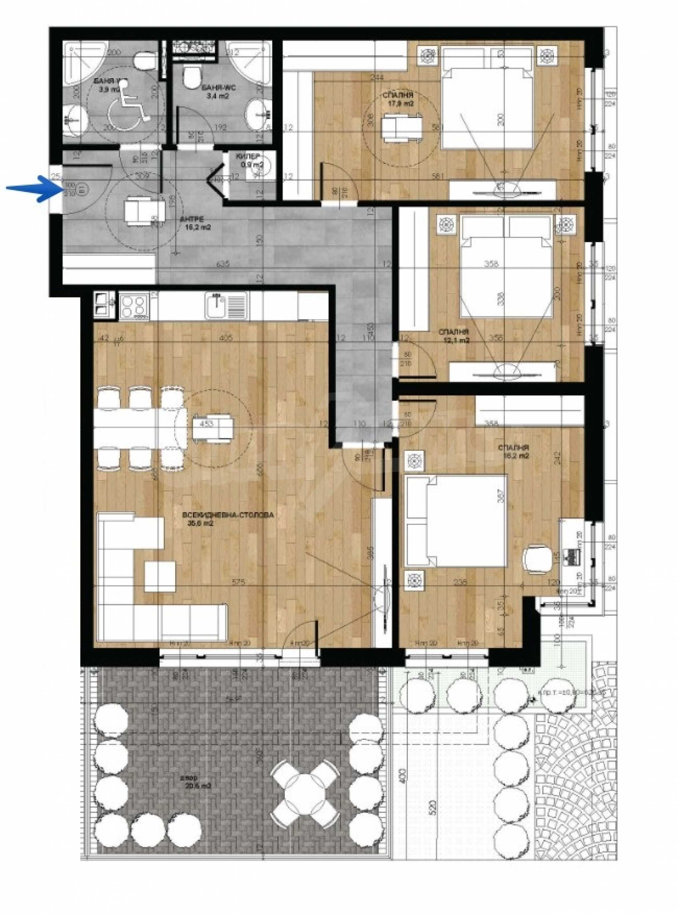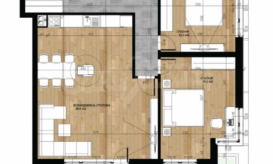 Prezentujemy Państwu czteropokojowe mieszkanie w nowym budynku, położonym w dobrze prosperującej dzielnicy metropolitalnej „Mladost 2”. Dzielnica ta jest chętnie wybierana do zamieszkania ze względu na doskonałą infrastrukturę, liczne połączenia komunikacyjne – autobusowe, trolejbusowe i metro, szerokie przestrzenie międzyblokowe z ogrodami oraz rozległy park „Vartopo”.